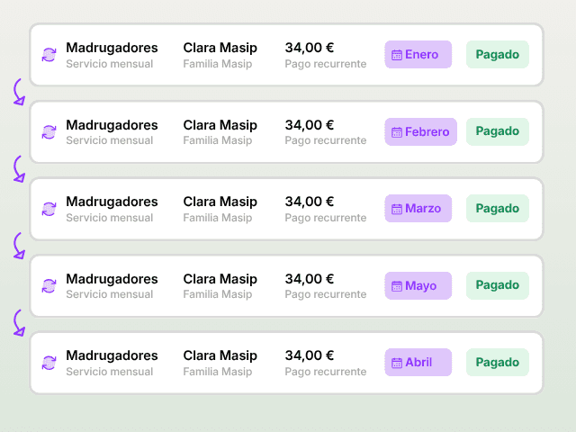 ¿Sabes que en Ábaco puedes automatizar por completo tus cobros? Las familias añaden su tarjeta y a partir de ahí hacen pagos puntuales o recurrentes de forma automática y el dinero va directo a la cuenta bancaria del AMPA.