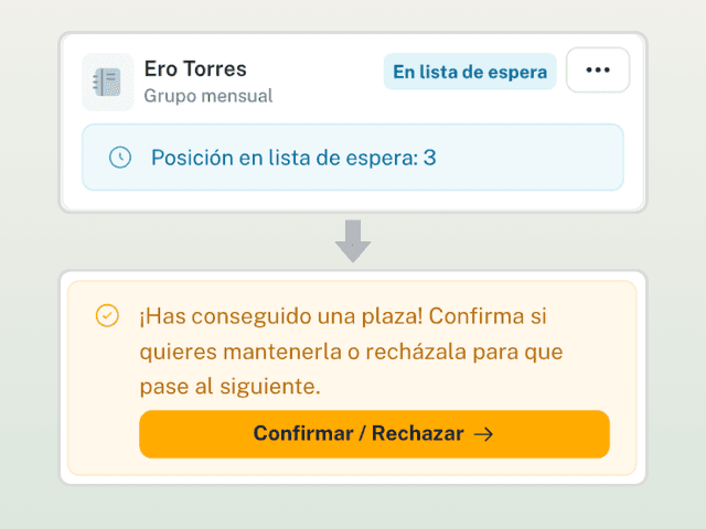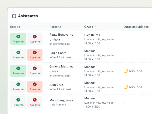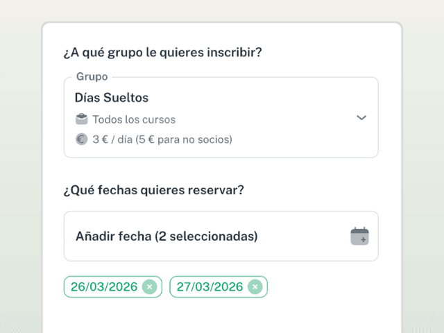 Define cómo se apuntan las familias a tus extraescolares, servicios y eventos, con plazas, políticas, listas de espera y mucho más.
