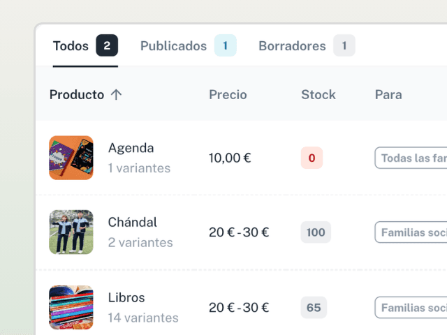 Extraescolares, servicios de conciliación, eventos del curso y productos del AMPA, todo en un mismo catálogo para las familias.