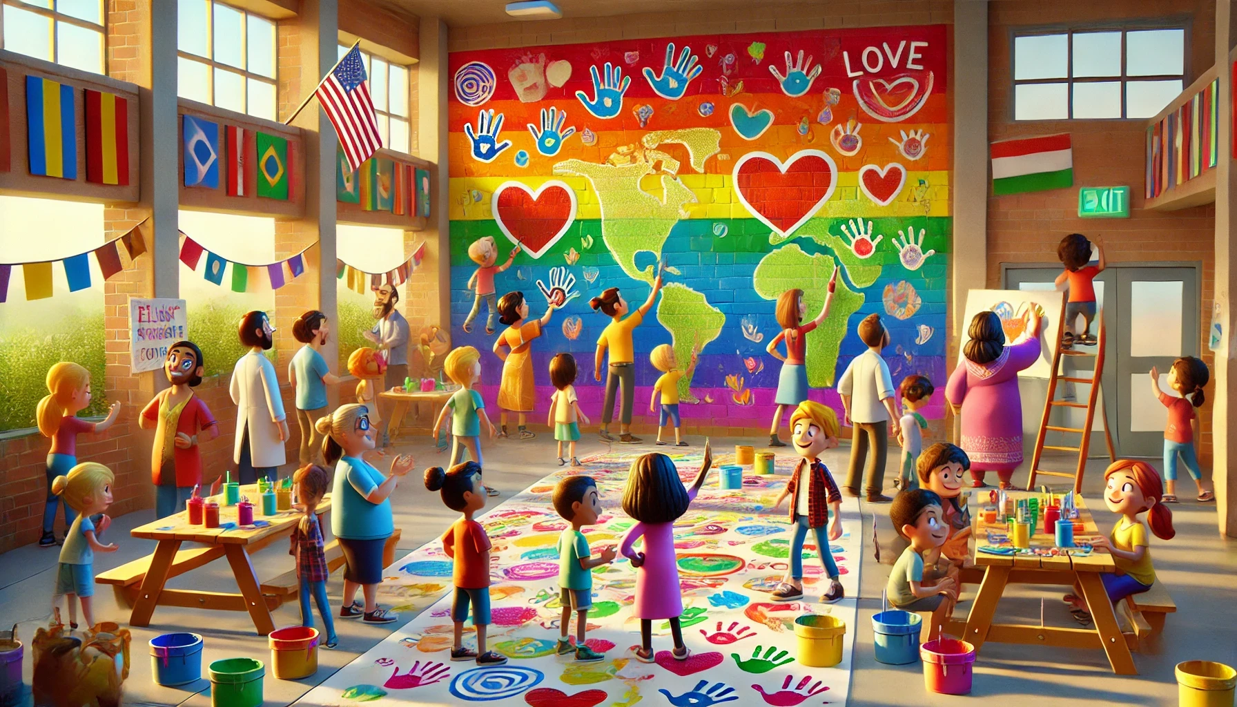 Convoca a alumnos, familias y profesores para diseñar y pintar juntos un mural en el cole que represente los valores de igualdad e inclusión.